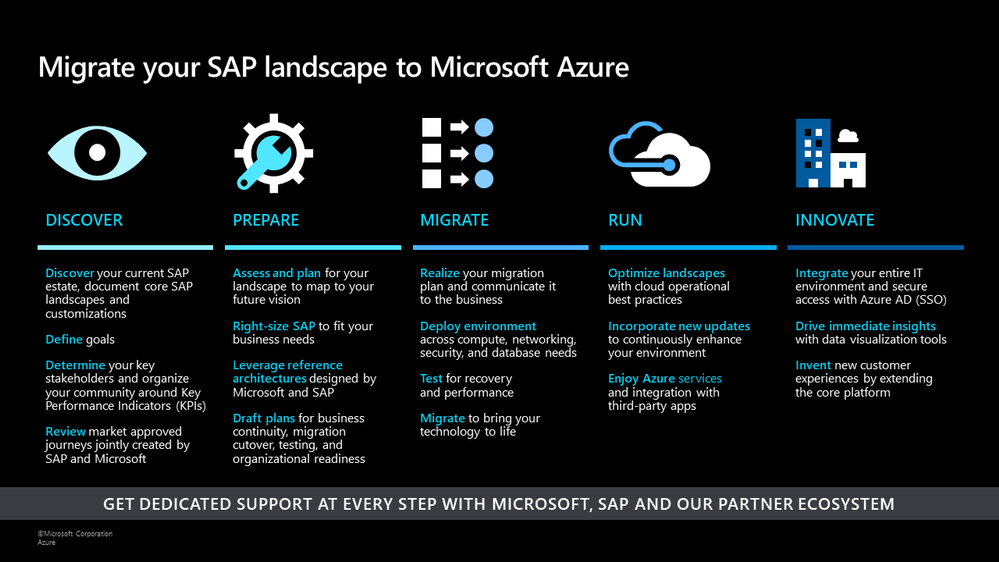 SAP is a powerful platform with specific, complex, and strict technical, security, and compliance requirements; this platform is unlikely to move in a standard migration factory. Azure Migrate features tools that can migrate most platforms and workloads, but SAP workloads require different tools and processes to replicate and deploy their assets. Once the core platform is deployed, standard processes and tools will help dependant workloads to resume and finish migrating.